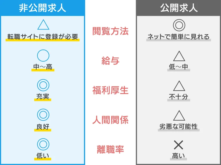 といった求人は、応募が殺到するのを防ぐため、転職サイトの会員限定で「非公開求人」として紹介される仕組みになっています。